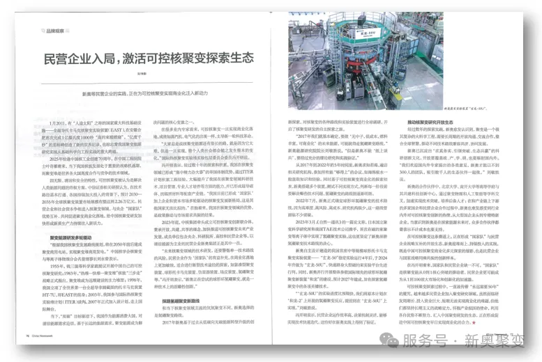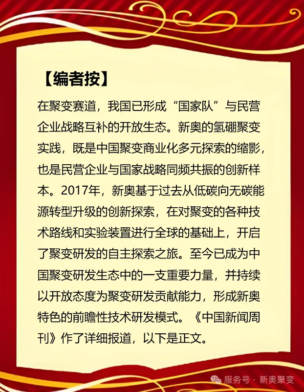在可控核聚變這條賽道上,正在形成“國家隊”與民營企業戰略互補的開放生態。新奧迎難而上、持續投入的實踐,既是中國可控核聚變商業化多元探索的縮影,也是民營企業與國家戰略同頻共振的創新樣本。