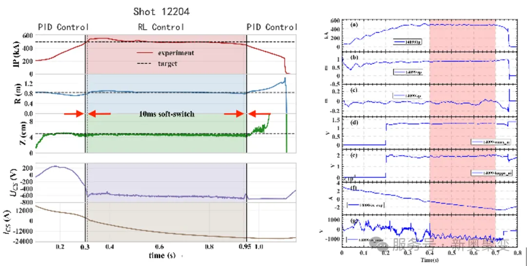 典型智能控製實驗中,等離子體電流的控製偏差小於10kA,等離子體水平位置(R)的控製偏差小於2cm ,並在近期成功實現了對形狀參數Rmax和拉長比的控製。